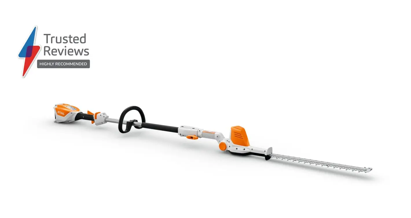 The STIHL HLA 56 is a cordless long-reach hedge trimmer that makes it easy to trim the tops and sides of tall hedges without ladders. Part of the STIHL AK System, it is compatible with all AK batteries. The adjustable cutting head angle allows for flexible working positions. Lightweight and easy to handle, it is ideal for homeowners with taller hedges and larger gardens. Battery and charger available separately or as a kit.